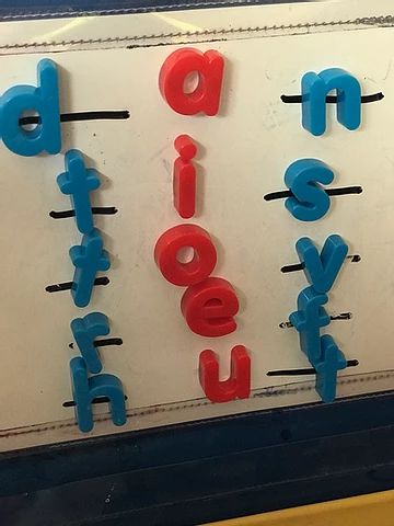 Encourage them to take out two letters of their choice. Let them use one for beginning sound and one for the ending sound. Place a vowel in the middle for beginning readers. Let them read the word. Allow them to make silly words as your goal is teach them how to blend.