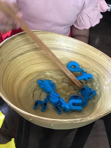 Little chefs will love making and stirring the word soup. Put letters in a bowl of water and stir them. We say this fun chant while we stir,